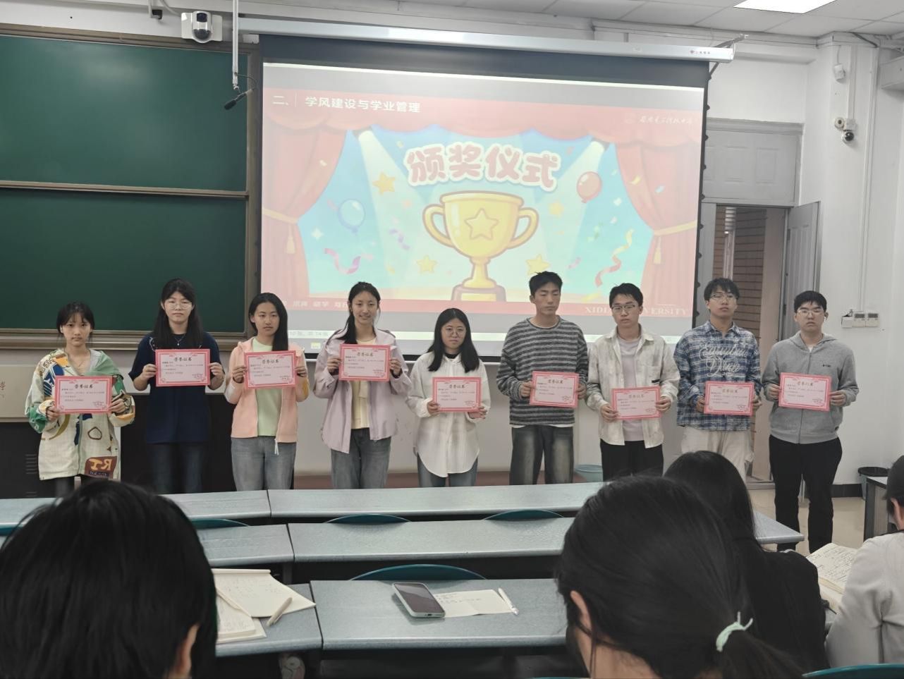表彰会对三月份早八出勤的陶家鑫等28名出勤优异的同学及范昱尘等31名出勤优秀的同学予以肯定和表扬,鼓励同学们持续保持良好学习习惯,夯实学业基础。会议最后,辅导员倡导各班级搭建互助学习小组,以小组联动、同伴互助的形式,以好学为荣,以笃行为志,持续营造比学赶超、共进共优的优良学风。